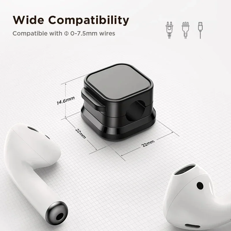 1.【7.5 mm Perfect Cable Slot Diameter】 Diameter of 0.3 inches (7.5mm) can hold most cables, such as phone charging cables, USB cords, HDMI thick cables, computer power cords, etc. Besides that, the slot diameter of 7.5mm can perfectly hold a charging head as small as the iPhone's original silicone charging cable without falling off, and the head cable can be pulled out smoothly for use.